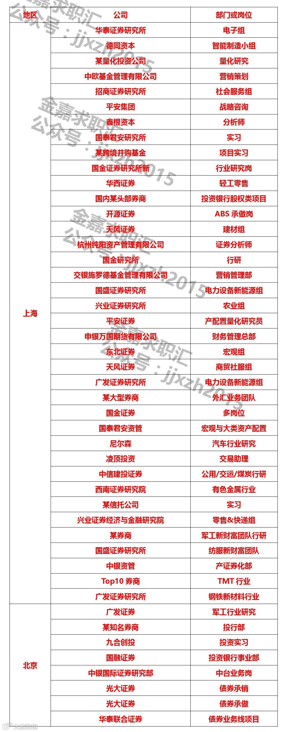 4、有券商研究所、PE/VC或咨询公司实习经验的优先;