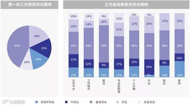 综合薪酬、平台、城市、匹配度、兴趣等因素,29%的海归认为第一份工作连基本预期都未达到。