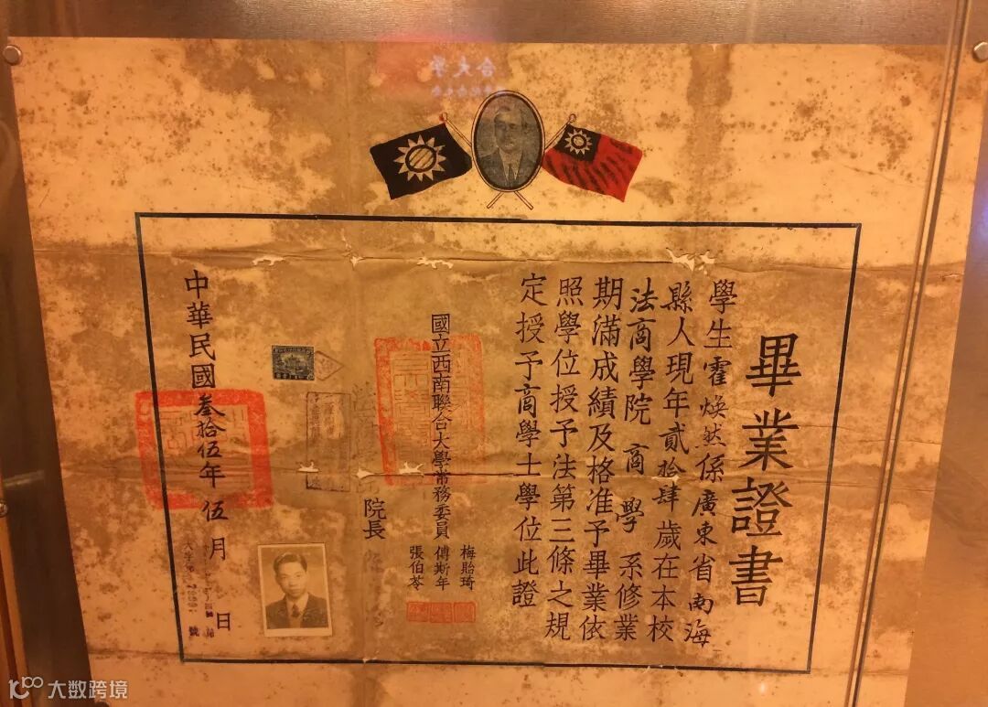 2017年11月1日,在北大展出的西南联大广东省南海县学生毕业证书。经历了西南联大之后,北大清华在南方和西南的招生有所增加,但是边疆身份考生仍然很少