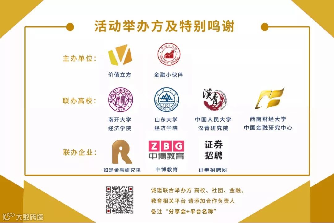 2019年6月15日,第五届大型高校毕业生金融求职线上分享会即将举办。本次分享会由价值立方、金融小伙伴主办,如是金融研究院、中博教育、证券招聘网以及南开大学经济学院、山东大学经济学院、中国人民大学汉青研究院、西南财经大学中国金融研究中心等知名院校联合举办。