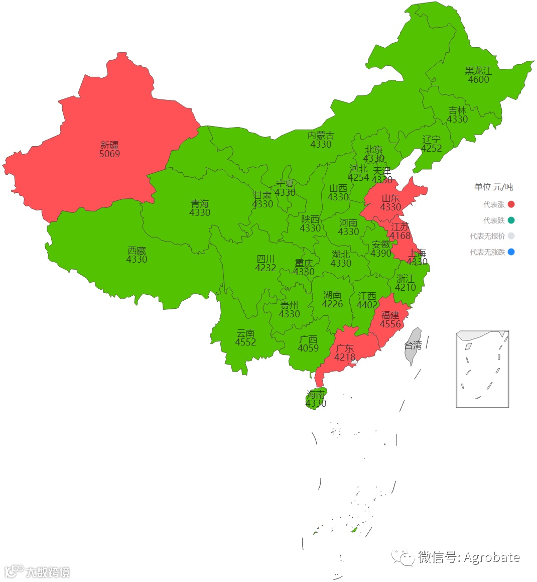 玉米豆粕大宗原料全国价格地图。豆粕玉米各地采购决策信息参考。按行政省平均价格。价格信息来自:饲料行业信息网。报价截止时间11:30,统计时间不同会造成当日价格有小幅差异。