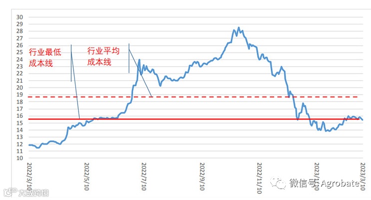 饲料便宜,猪贵,才能产生“暴利”。只有等到饲料便宜之后,同时,猪出栏量下来。猪周期上行周期才会开始。