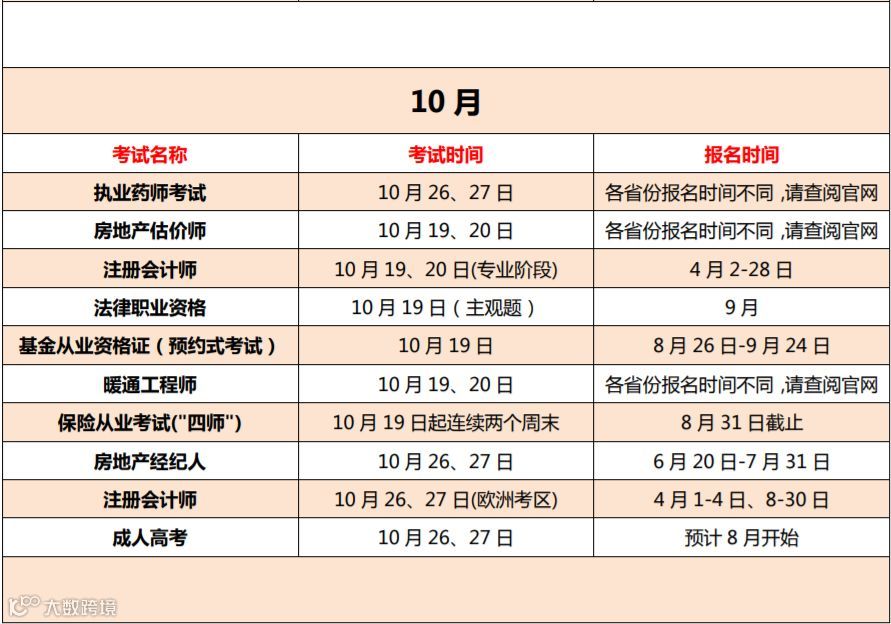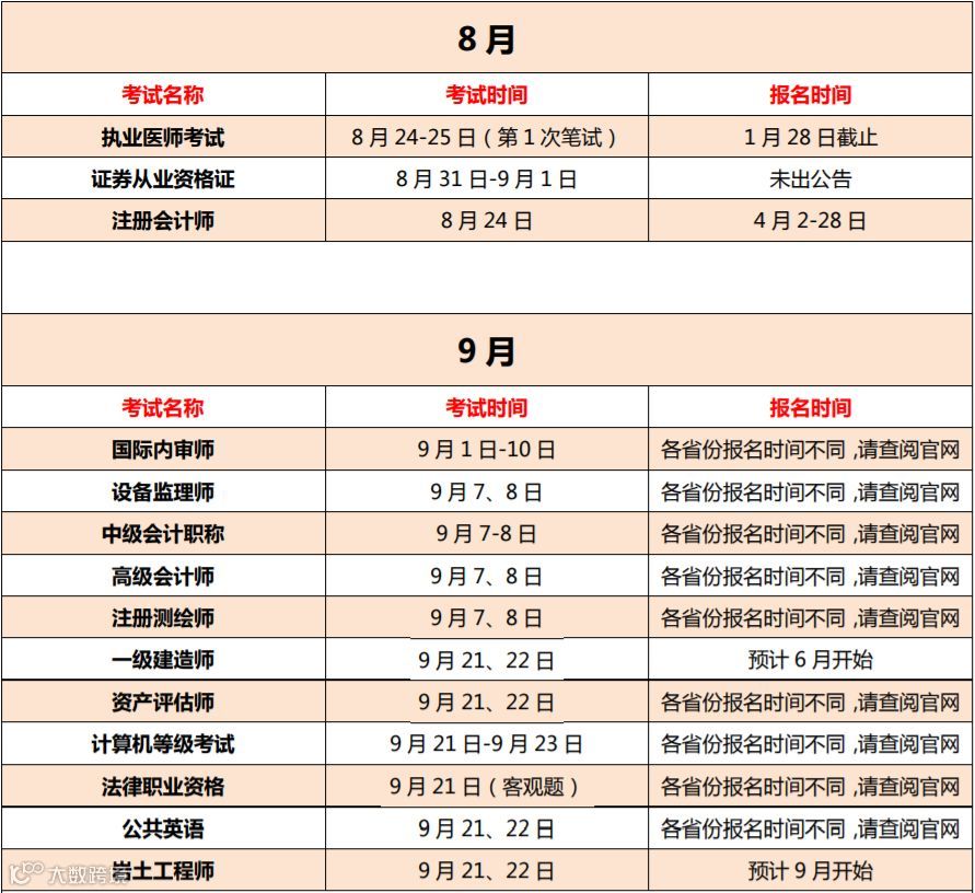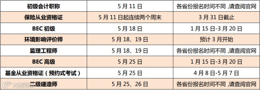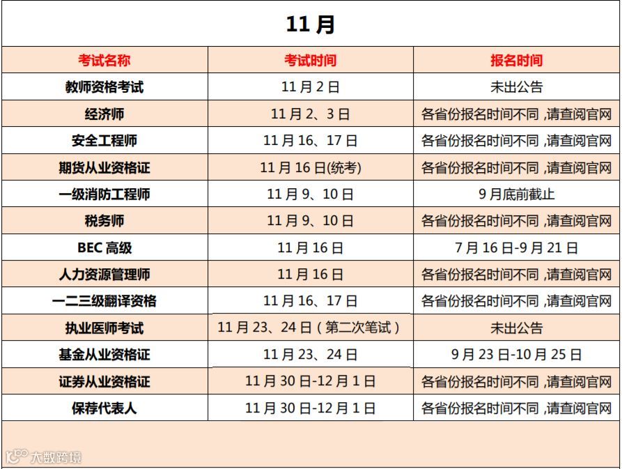 由于部分证书会因为地区的不同而设定不同的考试时间,本文篇幅有限不能将链接全部涵盖,因此部分证书的报名时间请各位查阅官网。