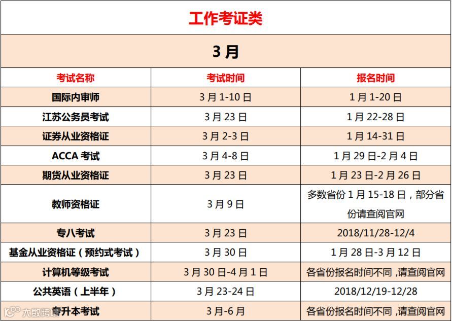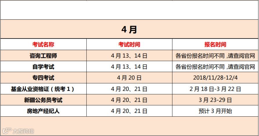 以下是小编辛苦搜集的2019年全年考证时间表,每个月按照时间的先后顺序排列成表。