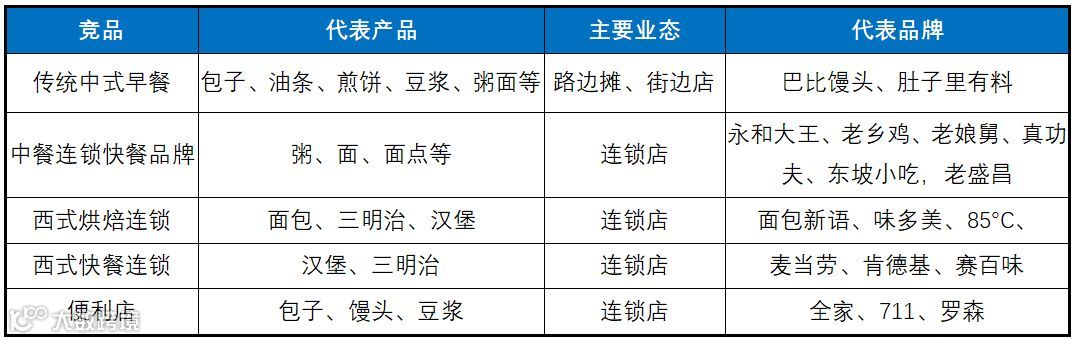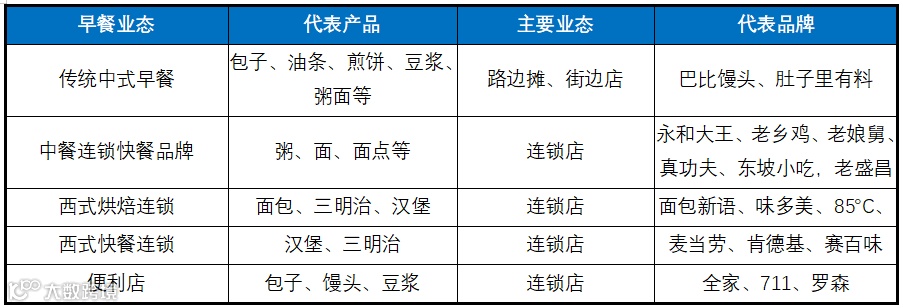 之前我们列举了早餐的主要类别,可以看到早餐真的做连锁品牌的有两类: