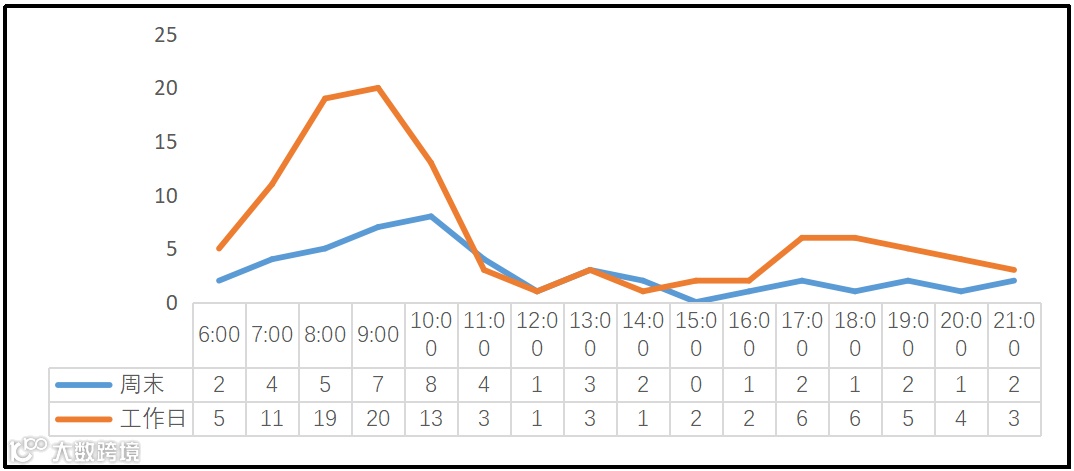 浦东大道地铁站煎饼摊是我们调研的5家煎饼摊里唯一一家全天经营的煎饼摊,但通过下图可以看到,其一天的销量高峰仍然集中在7:30点到9:30点之间,全天销量105个,高峰期60多个,几乎占全天销量的60%。