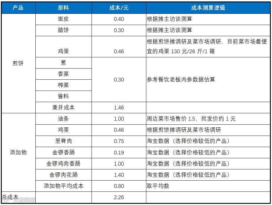 老刘的煎饼摊产品种类不多,平均客单价在6元左右,单个煎饼的成本2.3元左右,毛利率在60%以上。