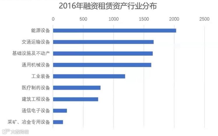 同时,从2016年的数据来看,融资租赁资产分布前五名是能源设备、交通运输设备、基础设施及不动产、通用机械设备、工业装备。这些行业中,有点企业是供给侧改革里面转型升级的重点对象,有的企业与一带一路和高端制造息息相关,通过融资租赁能够很好地支持上述战略的落实。