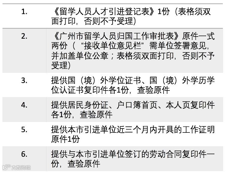 备注:如留学人员需随迁配偶或未成年子女,需提供《广州市留学人员优惠资格证》办理。