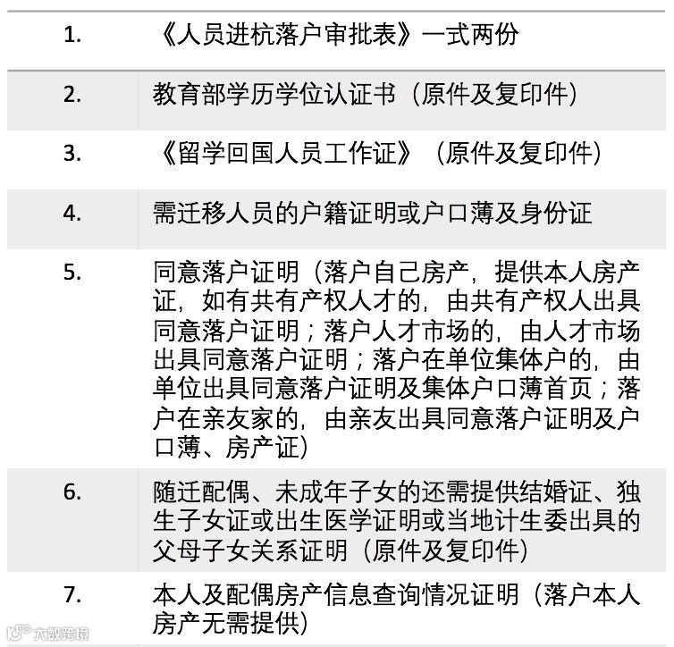 1、在国外学习并获得学士以上学位的公派、自费出国留学生(非华侨,年龄按杭州市现行人才引进政策执行),在杭有就业单位,取得浙江省或杭州市人力资源和社会保障部门核发的《留学回国人员工作证》的,均可办理在杭落户。