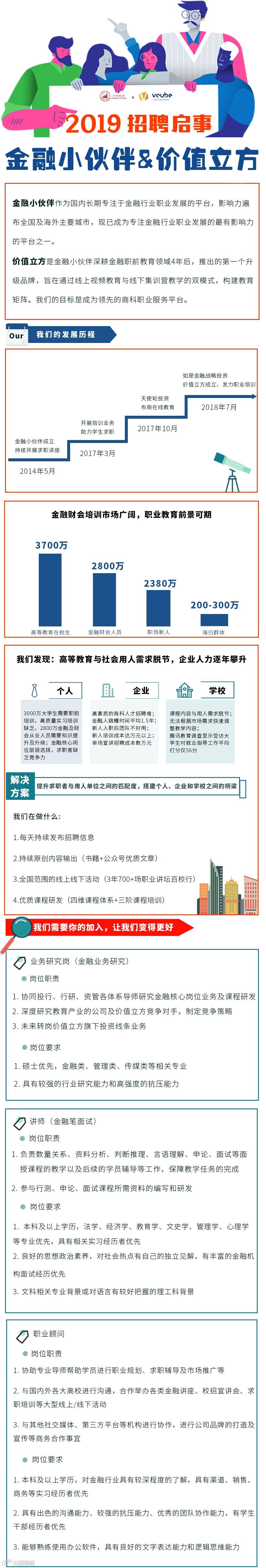 负责价值立方和金融小伙伴的销售工作的伙伴已拥有14年工作经验,在加入金融小伙伴之前是在投行工作。当初因为一个偶然的机会接触到金融小伙伴团队,深知职业规划的重要性,被团队“成人达己”的精神所感动,毅然告别了历经磨难才进入的投行,加入了教育行业的金融小伙伴。