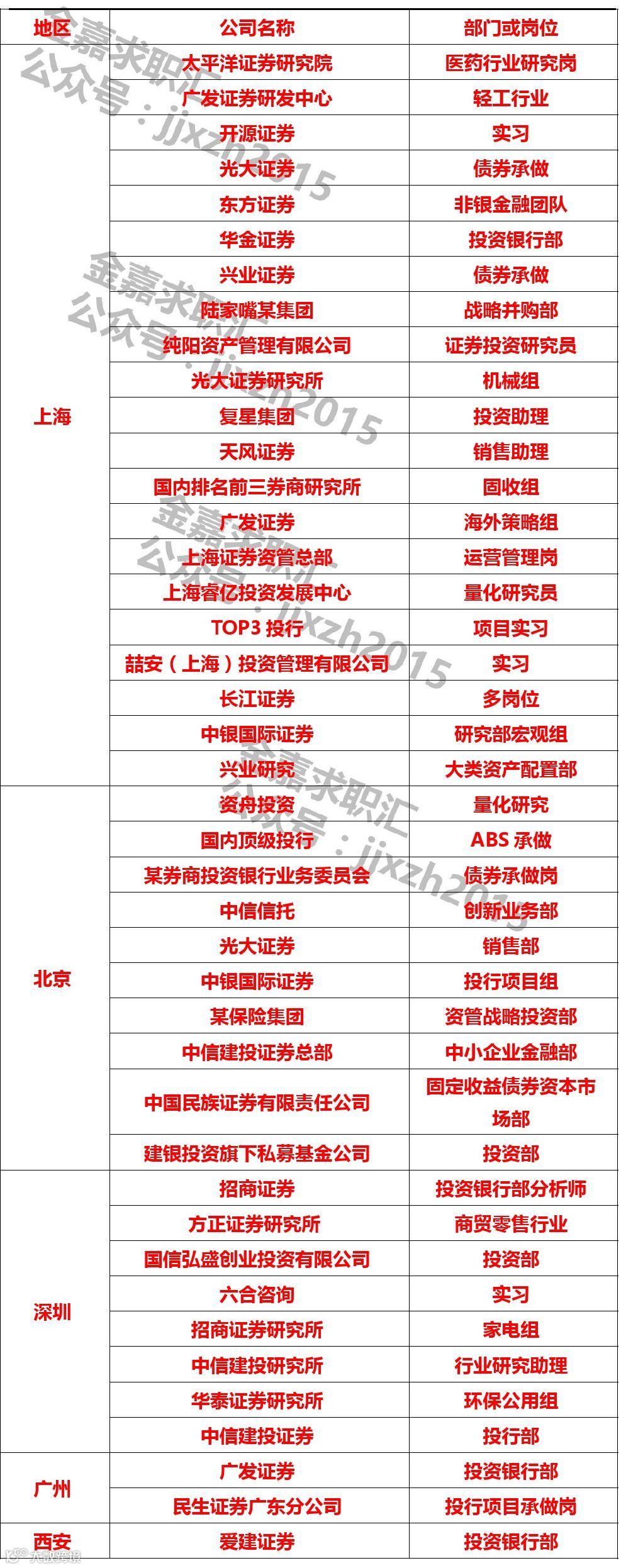 3、有券商研究所、券商投行部、咨询行业、会计和律师事务所实习经验优先;