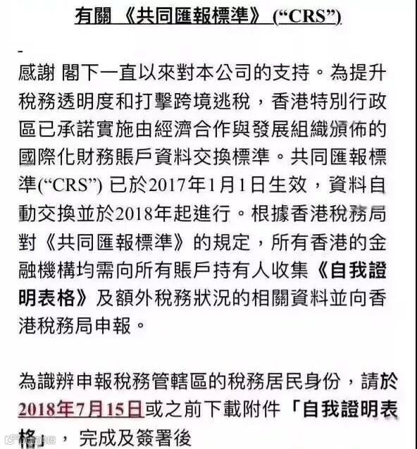 简单说,CRS是各国和地区之间交换的税务信息,主要就是来核查纳税居民是否依法履行了纳税义务,以往因为监管缺失和法律漏洞,你可能没有交,甚至没意识到自己要交,但不代表你不该交。