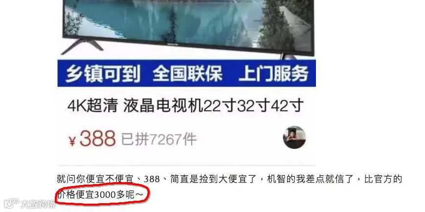 在这场风波里,公众把自己划分成了五环外和五环内两个群体。最初有一部分自媒体直言,一直不能理解,17块一桶的所谓临期奶粉,究竟卖给了谁,388的小米新品电视,真的能看吗,一看就是假货,拼多多是把知识产权、品牌商标按在地上摩擦。