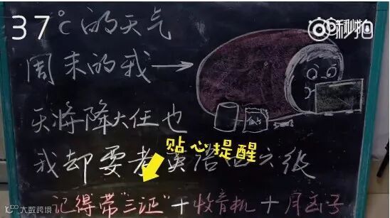 原来,这个宿管阿姨发现学生都不看小黑板通知,每次都是匆匆而过,灵机一动就想起写小段子来吸引大家。