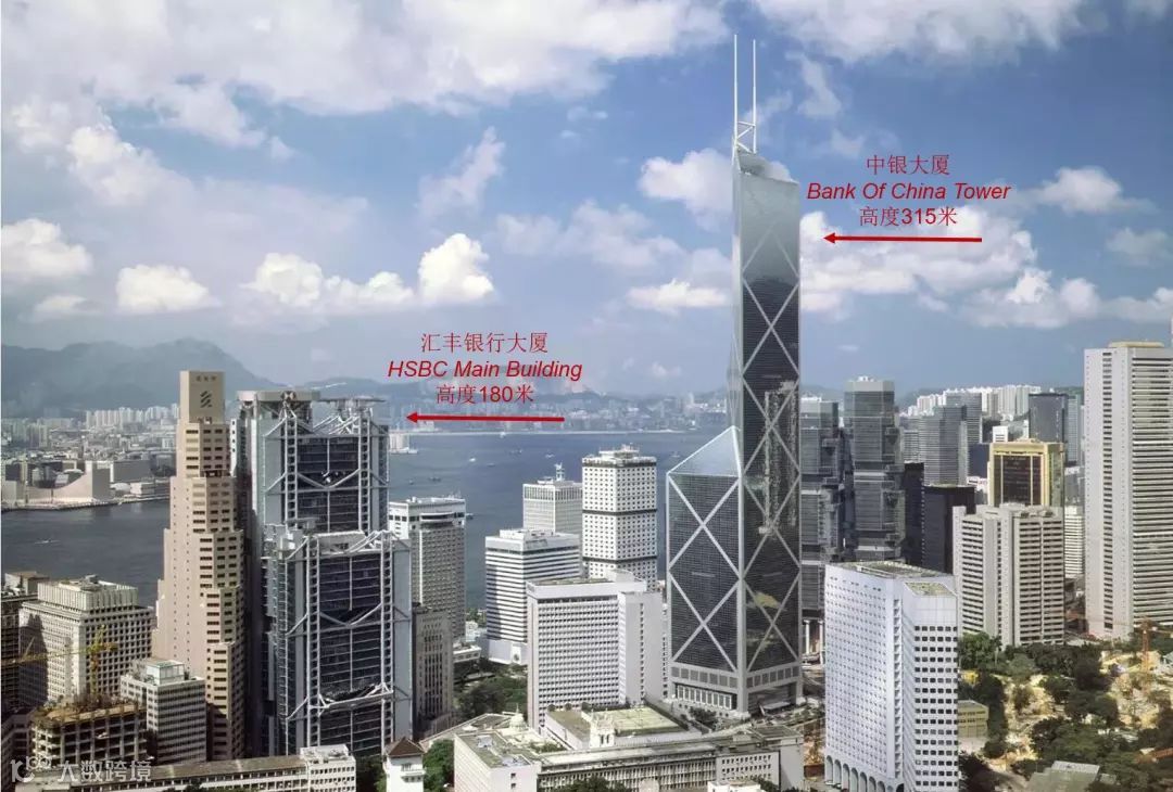 就这样,三幢由全球建筑大师设计的高楼,在香港中环依次排开,从左到右依次是315米的中国银行大厦、283米的长江集团中心、180米的汇丰银行大厦,它们分别代表着刀锋的金,拙盾的土,重炮的火,火生土,土生金,环环相扣,港岛天际线上的风水局暂时获得了平衡。