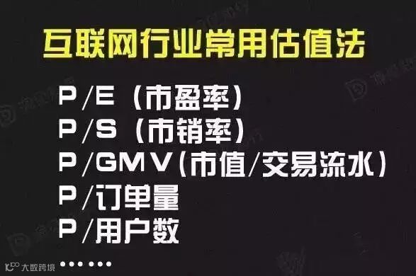 我们总结一下,这个互联网公司天使轮的估值方法是拍脑袋;A轮的估值方法是P/MAU;B轮的估值方法是P/MAU、P/S;C轮的估值方法是P/MAU、P/S、P/E;也许上市若干年后,互联网公司变成传统公司,大家还会按P/B(市净率)估值!大家回想一下,是不是大多数的融资都是类似的情况?