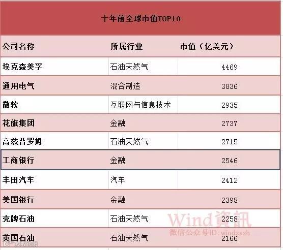 从中国企业的全球排行来看,行业兴替已开始显现。 “宇宙大行”工行已经跌出全球市值Top 10,取而代之的是“互联网新秀”腾讯。
