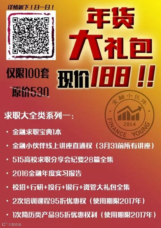 Colin师兄:资深小伙伴成员,目前就职于国内某TOP3券商固定收益部,曾获校三好学生、市优秀毕业生称号,曾经在券商投行、香港商行、外资咨询、地方发改委等地实习,期间接触政府、咨询、投行等不同领域,深刻感受到命运抉择的重要性,对于职业选择尤其是跨领域选择有独特的体会。