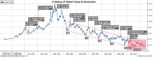 图表1: 十债收益率记录着全球危机和复苏。它很可能已构建了历史性的底部。