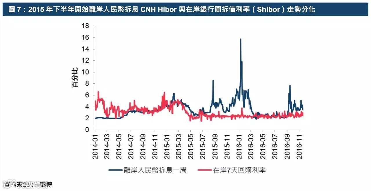 在目前离岸人民币市场整体规模收缩的情况下,资产配置失衡带来的扩散效应可能有所放大,尤其是临近季末假期(中秋、国庆等时点),内地银行间市场因节日休市,季节性因素导致资金回流在岸,这也是2016年9月底至10月初国庆前,离岸人民币市场拆息出现大幅波动的主要背景。
