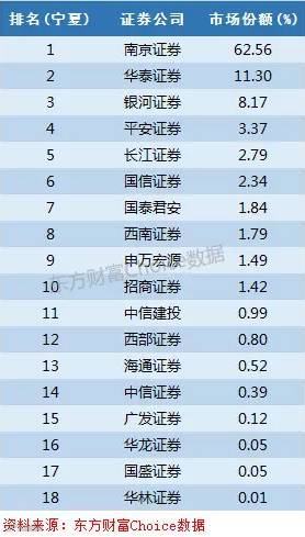 南京证券托管了西北证券公司的营业部,故而获得了其在宁夏62%的市场份额。