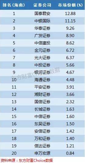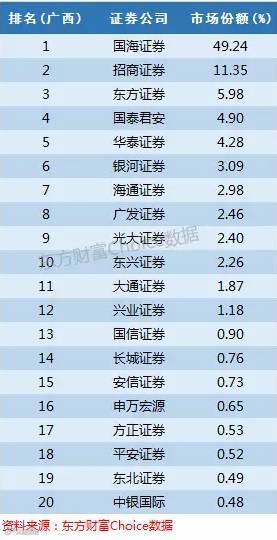 国海证券前身为广西证券,在广西占据接近一半的份额就不足为奇。