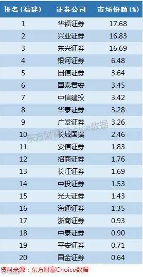 华福证券和兴业证券是纯正的本地券商,占据17%和16%的市场份额,那么注册地在北京的东兴证券占据16%的份额是怎么回事?因为东兴证券接手了以前的闽发证券,真相大白。