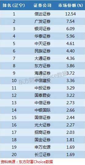 信达证券并不是纯粹的辽宁本地券商,也不能算是超级大券商,为何市场份额会处于领先地位,原因在于信达证券是在前汉唐证券和辽宁证券的基础上成立的,市场份额为12.54%。