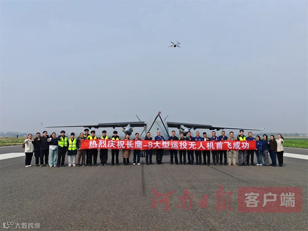 3月31日,中国兵器工业集团北方公司长鹰无人机自主研发的“长鹰-8”大型运投无人机在郑州成功完成首次飞行试验。