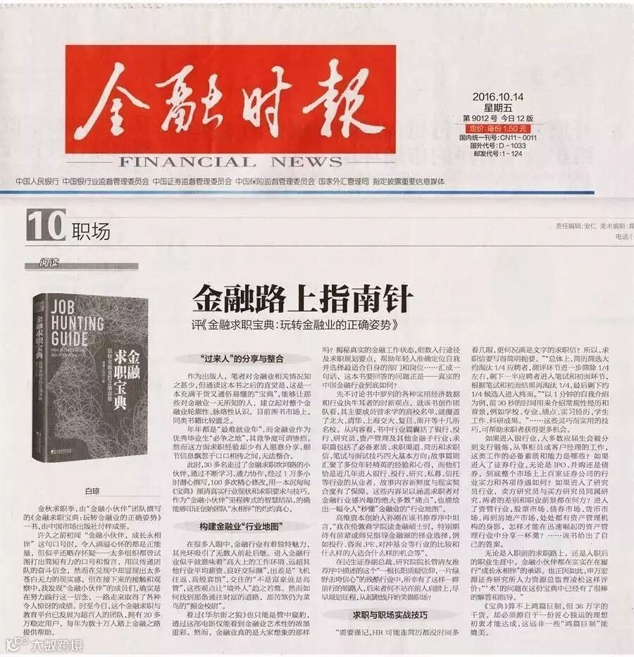 本硕就读于南开大学,先后曾在多家顶级券商投行部实习等,完整参与校招全过程,并拿到包括银行总行,各券商投行,信托公司等多份offer。对校园招聘有深刻见解现,就职于中银国际证券投行部,《金融求职宝典》作者之一。