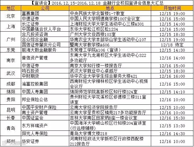 【宣讲会】2016.12.15-2016.12.18 金融行业校招宣讲会信息大汇总