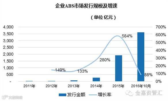 从2016年发行情况来看,企业ABS市场延续快速增长态势,发行规模更是在2015年基础上大幅跃升,成为发行量增长最快的ABS品种。随着发展的广度和深度不断延伸,市场呈现出几个发展特点和趋势: