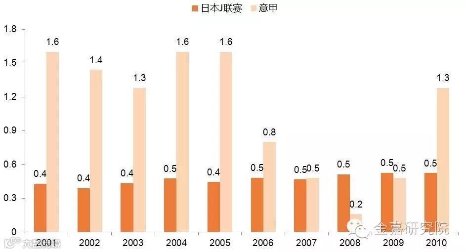 日本J联赛和意甲的比赛日收入