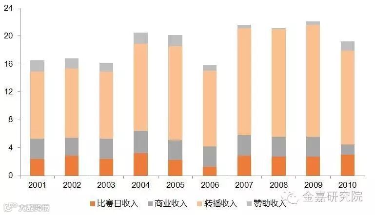 意甲2001-2010年收入构成(亿美元)