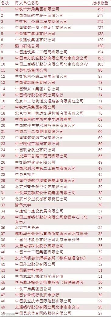 硕士生重点关注的企业(以下留京指标数量,仅对硕士生有效哦~)