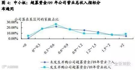 如同选择高送转的股票一样,我们首先通过超募指标的筛选来判断哪些小盘股易发生并购事项,选择的超募指标包括超募资金总量、超募资金占09年公司营业总收入比例、超募比例(超募比例=(实际募集资金量-预期募集资金量)/预期募集资金量)三个方面。