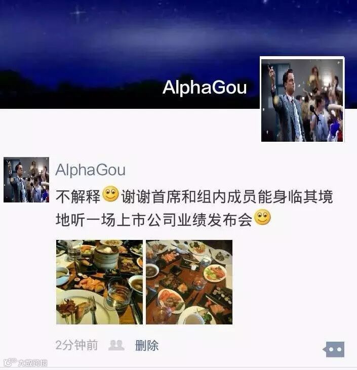 狗蛋一遍拿着餐盘排队,一遍刷着微博,恍然大悟状。于是将前几日首席和组内研究员一起去某公司业绩发布会拍的几十张免费自助餐的照片精心挑选出几张,为了显得不是那么刻意,狗蛋放弃了滤镜。