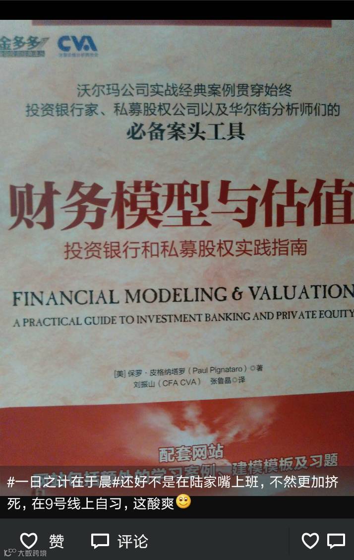 他掏出手机,将手里的《Financial Modeling&Valuation》扉页照了下来,打开微信,开始纠结,要配怎样的文字?