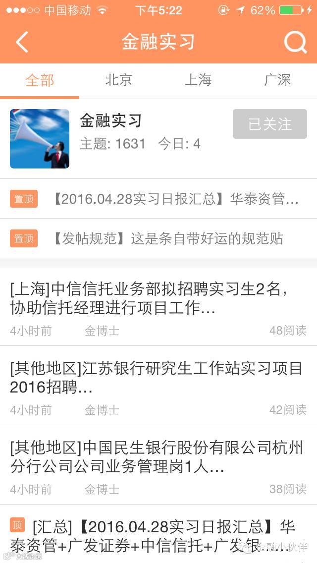 各类实习岗位资讯及汇总
