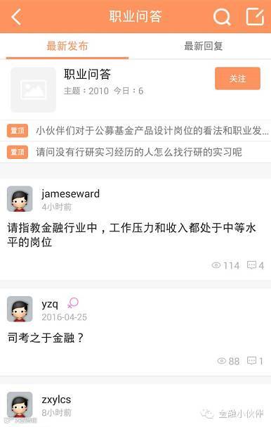 实习有困惑,offer难选择,工作有困难,敢问路在何方,金融小伙伴为你提供金融业咨询问答服务,专业的问答团队为你在职场路上解答疑难。金融业“知乎”,更多的经验分享,更多的知识传授,各路大咖助你职场一马平川。