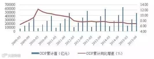 2015年,中国经济增速进一步下滑,前三季度GDP增速由2014年的7.3 %下跌至6.9%。12月份CPI同比增速则跌至1.60%,PMI指数长期停留在荣枯线之下,大宗商品价格不断下跌,消费、投资需求疲弱,通缩担忧上升。由于过去几年连续推进的经济结构转型,传统产业在产能过剩的泥沼中尚未走出,而政府通过大众创业、万众创新鼓励的新兴产业也未能成为经济的支柱,经济的L型增长逐步成为大家的共识。