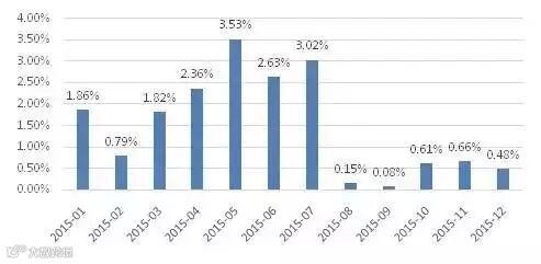 2015年股票市场跌宕起伏,给股票定增带来了空前机会,6月份之前,受股市价值中枢抬升影响,股票稀缺性大幅上升,上市公司借定增也可以大幅推动其公司的价值认同,上市公司定增数量大增,而6月份之后,受股灾影响,定增市场出现了高折价率的情况,许多已预案公司股价纷纷跌破增发价,在低市场点位加高折价率的环境之下,市场迎来又一波定增热潮,就2015年全年来看,全年发行329例,仅次于2014年。