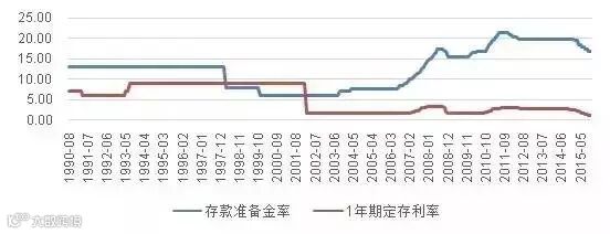 图14:一年期定期存款利率及存款准备金率变动(%)