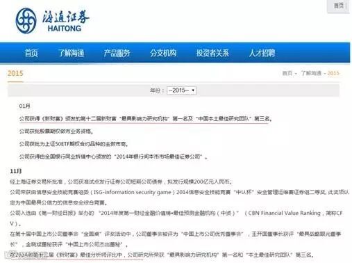 因此,在知道我们这周要写海通后,小编第一时间就仔仔细细地翻阅了海通证券2011年到2015年期间的年报和中报,找寻公司对研究团队的评价和期许。2011年,公司在年报中提到要“夯实公司人才、风控、IT 和研究四大支柱建设,构建坚实的支持平台”,同时还需要“继续致力于提升研究团队的研究实力,提升行业影响力”,2012年公司则在年报中秀了一把新财富战绩(“本土最佳研究团队”第六名,“最佳分析师”上榜人数同比大幅增加),并再次强调了“研究、人才、IT 和风险管理四根支柱建设”的重要性。