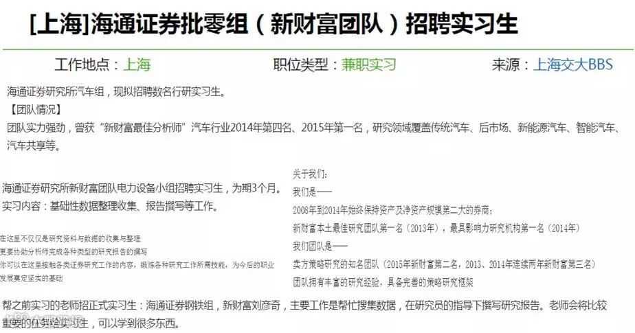 A:作为应届生在海通留下来可能是一件需要“天时地利人和”的事情,首先你要足够优秀,其次要有足够的招人名额给你,行情不好的时候券商研究所通常都会收紧招聘。平时实习生招的比较多,但留用的机会不是特别大。想要留用的话值得注意的应该是暑期实习和寒假实习,表现好的话机会相对大一些,貌似这两个实习同样需要走正式的校招程序,建议多关注官方信息和应届生网站。