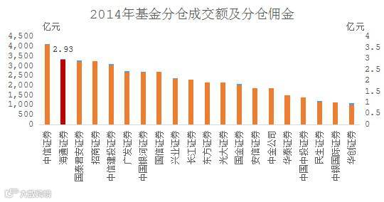 对研究所来说另外一个重要的考核指标--基金分仓佣金,则体现了机构投资者对研究所投研服务的认可。2014年海通证券基金分仓股票成交额为3340.17亿元,分仓佣金2.93亿元,均位居行业第二,仅次于中信,显示其强大的投研支持能力。