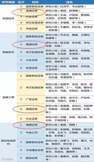 海通证券研究所,自1993年就成立的老牌研究所之一,不仅承担着服务机构客户的重要职责,还为海通品牌的市场影响力立下了汗马功劳。海通研究所近年来一直保持着在券商研究领跑梯队中的位置,显示着出色的稳定性,挑出近三年随便一年的新财富榜单,随手一翻随眼看去,基本观感就是:每一页上都有海通海通海通海通......