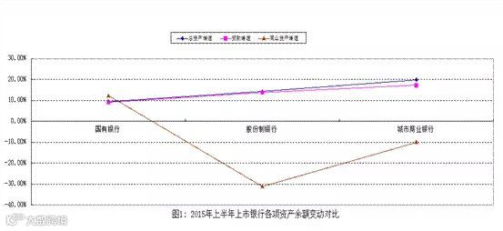 截至2015年半年末,16家上市银行资产总额115.83万亿元,同比增加11.48万亿元,增长11.00%;贷款总额57.11万亿元,同比增加5.35万亿元,增长10.34%;同业资产余额为11.12万亿元,同比减少9695亿元,减少8.02%(见图1)。