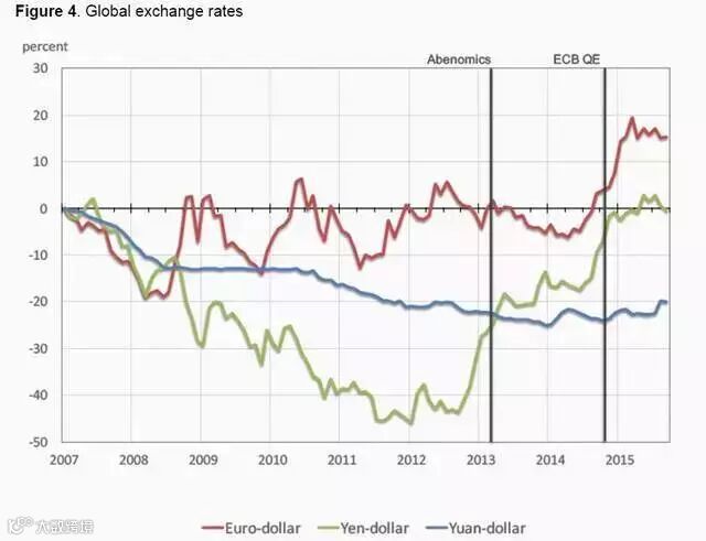 2015年8月11日,中国央行引导人民币贬值。尽管幅度相对中等,但这种货币贬值预示着中国让人民币对美元汇率升值或者保持稳定的意愿已经到了转折点。2015年10月22日,欧洲央行行长德拉吉暗示,欧央行有意愿调整QE的规模、构成和期限。